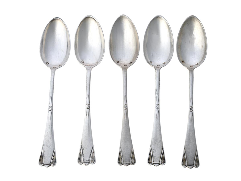 TESKEDAR, 5 st, Silver, Österrike, 18/1900-tal, Wien, längd 15,3 cm, vikt 127,5g