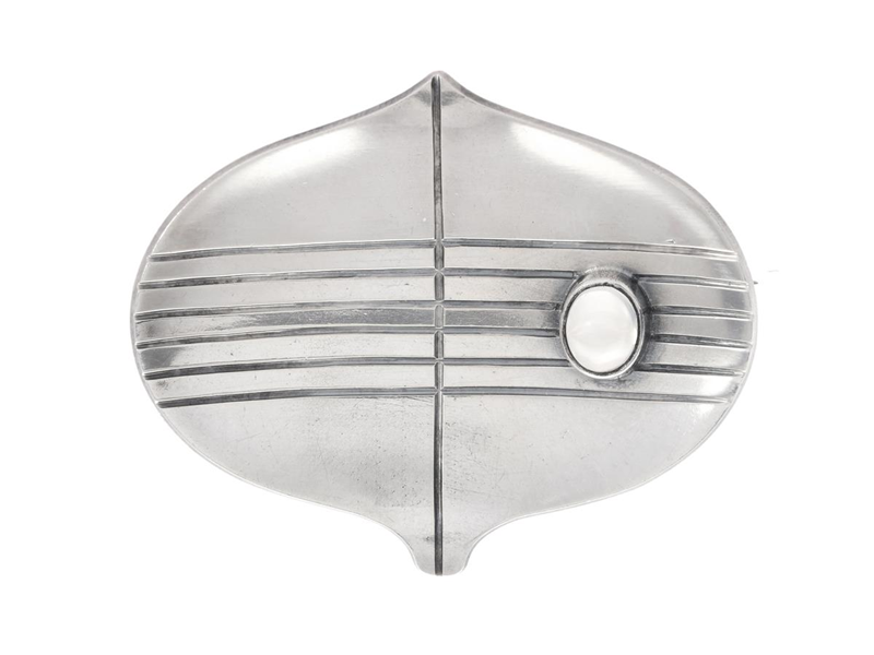 STIGBERT, brosch, sterlingsilver, cabochonslipad månsten, Stockholm 1955, längd 4,5 cm, vikt 11,7 g.