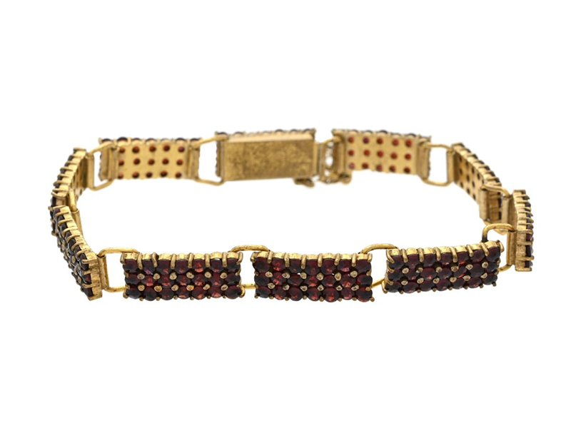 ARMBAND, gulmetall, granater, längd ca 18 cm, säkerhetskedja.