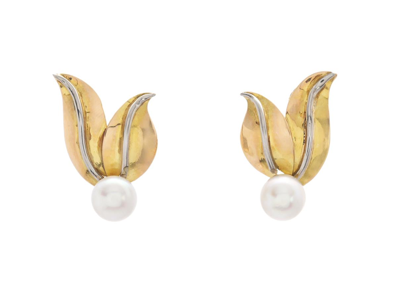 PÄRLÖRHÄNGEN, 18K guld/vitguld, odlade pärlor, stift, höjd 17,0 mm, vikt 2,3 g.