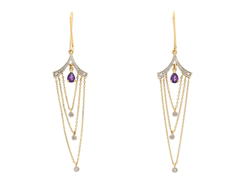 ÖRHÄNGEN, 18K guld, droppslipade ametister, briljantslipade diamanter ca 0,02 ctv, höjd ca 55 mm, krokar, vikt 2,2 g.