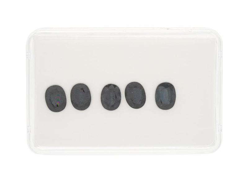 SAFIRER, 5 st ovalslipade, 7,03 ctv. 8,02 x 6,01 x 2,66 mm, 7,90 x 6,02 x 3,75 mm, 8,02 x 6,01 x 3,25 mm, 8,11 x 6,08 x 3,53 mm, 7,98 x 6,13 x 3,60 mm