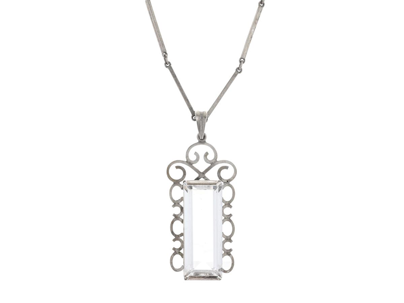 ENGELBERT, hänge med kedja, silver, bergkristall, Stigbert, Stockholm 1943, höjd 51 mm, längd ca 62 cm, vikt 21,4 g.