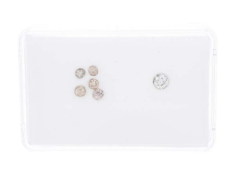 DIAMANTER, 6 st, 1,08 ctv, briljant- antikslipade, ca LYBr-LPBr/SI-P, nagg och skador.
