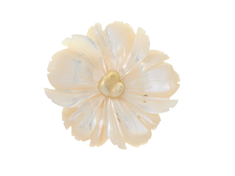 BROSCH, 9K guld/metall, skuren pärlemor, barock pärla, diameter 35 mm, vikt 10,9 g, pärlemor med skada på baksidan.