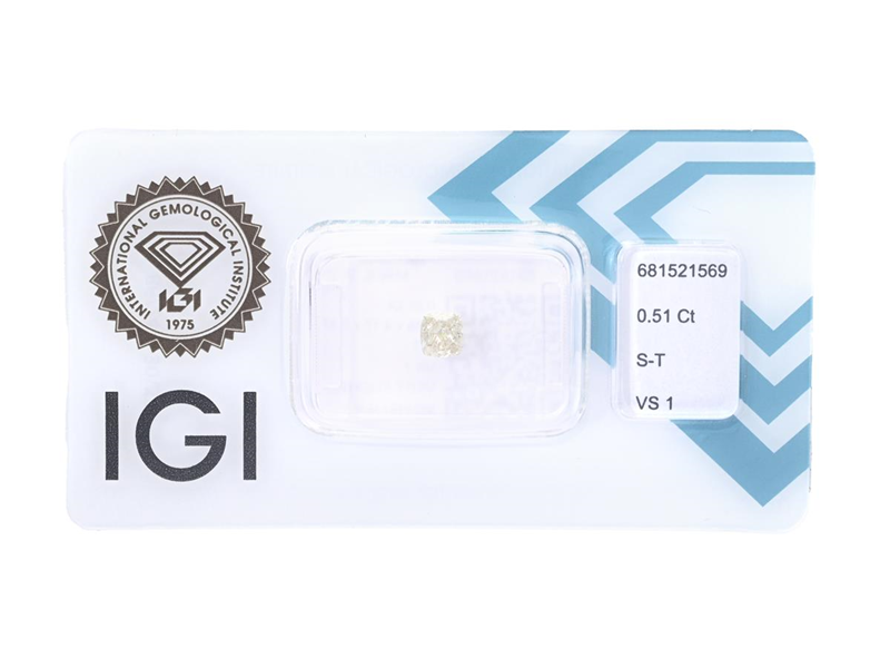 DIAMANT, kuddslipad, 0,51 ct. LY(S-T/VS1, IGI Diamond Report 681521569, förseglad.
