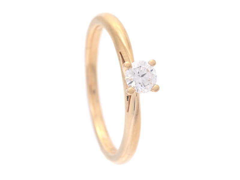 ENSTENSRING, 18K guld, briljantslipad diamant 0,23 c enligt gravyr, ca TW/VS, stl 16,5 mm, vikt 2,7 g, gravyr.