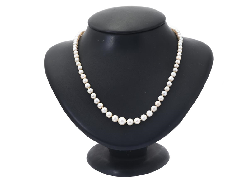 PÄRLCOLLIER, odlade pärlor ca 3 -7,5 mm, lås i silver, glas, längd ca 48 cm, vikt 15,6 g, säkerhetskedja.