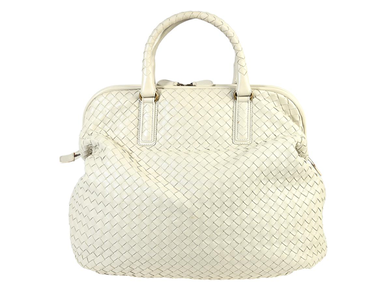 VÄSKA, BOTTEGA VENETA, Vintage Doctors Bowling Tote Bag, benvitt flätat läder, mässingfärgade beslag, 40x35x15 cm, dustbag, bruksslitage.