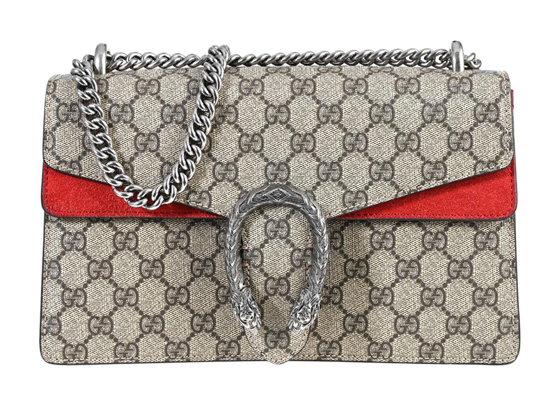 VÄSKA, GUCCI, Small Dionysus Chain Crossbody, Supreme Coated Canvas, röd mocka, silverfärgade beslag, 27,5x16x5 cm.
