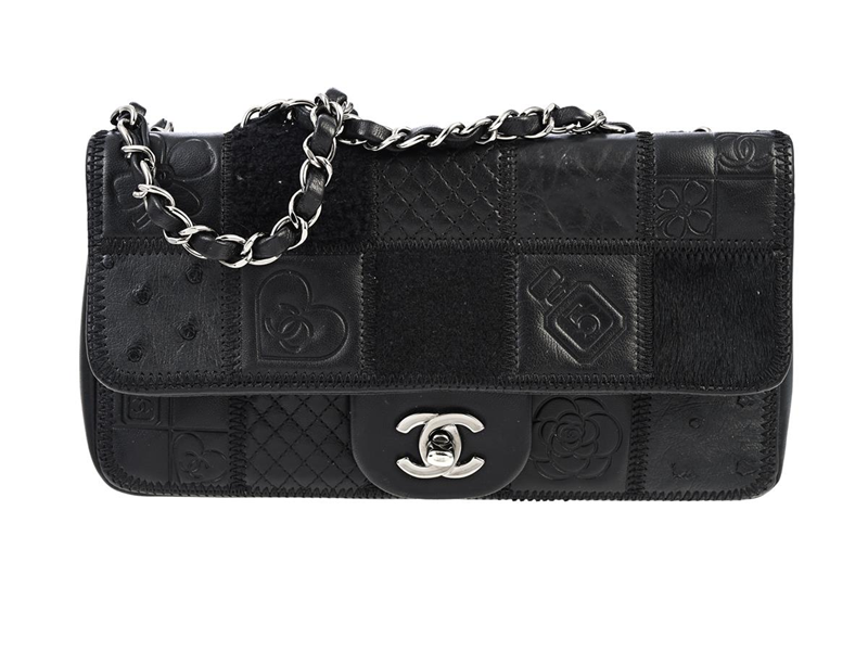 VÄSKA, CHANEL, Autre Marque CC Icon Chain Flap Bag, svart skinn, tyg, patchwork, No.5, mörka silverfärgade beslag, 23x12x6 cm, hologrammärkt 11007908, år 2006-2008, cert.