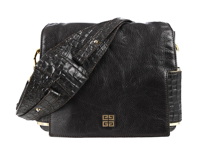 VÄSKA, GIVENCHY, mörkbrunt läder, guldfärgade beslag, Logo, 27x24x6 cm, avtagbar axelrem.