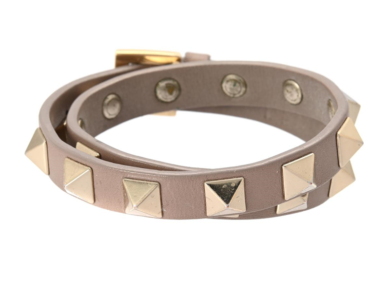 ARMBAND, VALENTINO, Rockstud Bracelet Double, beiget läder, guldfärgade metallnitar, längd ca 34-37 cm, bredd 1 cm.