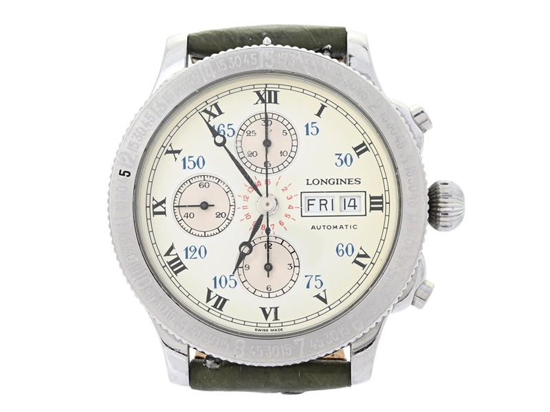 LONGINES, Hour Angle Watch Chronograph, Cal 674.7 (ETA 7750), Boett nr. L2.602.4, kronograf, herrur, 42 mm, stål, automatisk, mineralglas, dag, datum, glasbaksida, läderband, ca 1995.