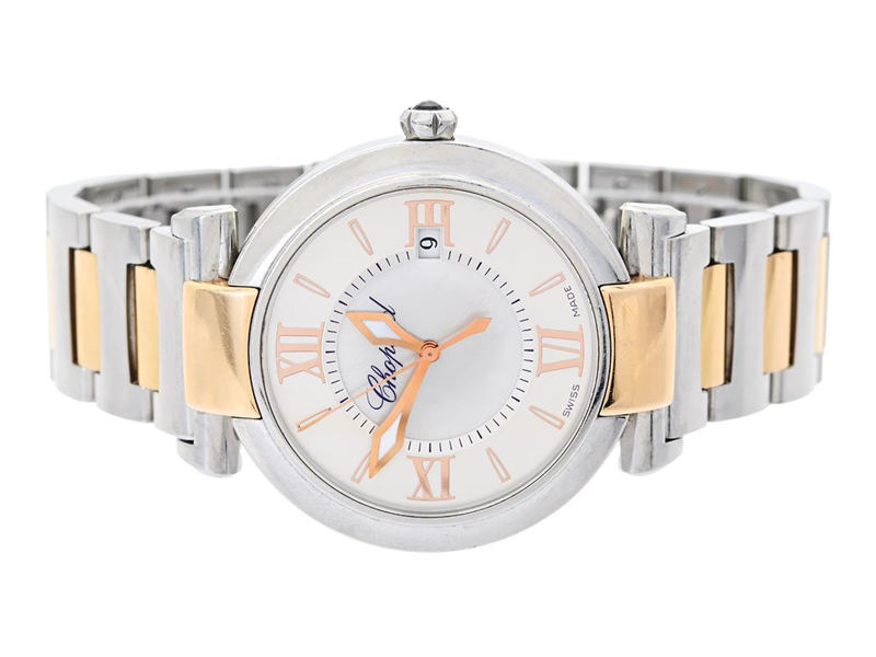 CHOPARD, Imperiale, Serie nr. 1852438, Ref nr. 388532-6002, Boett nr. 8532, damur, 36 mm, stål/rosa guld, quartz, safirglas (nagg), datum, pärlemorurtavla, OBS! se fördjupad information, krona med ametist (0,10 ct), originallänk, viklås, cert, september 2014, box, ytterkartong.