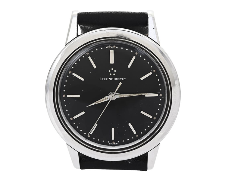 ETERNA-MATIC, herrur, 35 mm, Cal 1412 UD, Serie nr. 4649171, Boett nr. 4525041, stål, automatisk, plexiglas, skadad urtavla, läderband, ca 1961.
