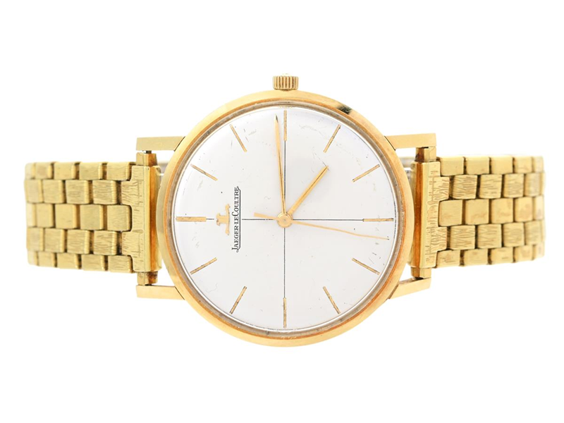 JAEGER-LE COULTRE, herrur, 34 mm, Cal P800/C, Serie nr. 1381548, Boett nr. 767603 / 2285, 18K guld, manuell, plexiglas, skadad urtavla, ca 1958, metallänk ej original.