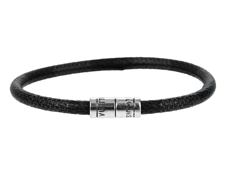 ARMBAND, LOUIS VUITTON, Keep It Bracelet, monogram Damier Graphite, silverfärgade beslag, diameter 7 cm, smyckespåse, ask.