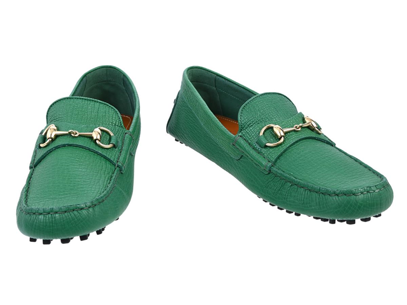 SKOR, GUCCI, Horsebit Loafers, grönt läder, guldfärgat spänne, stl 9½ ca 42½.
