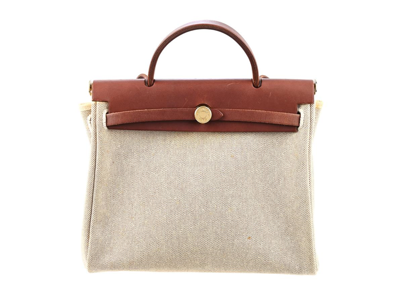 VÄSKA, HERMÈS, Herbag 2 in 1 PM, brun, beige, vinröd Toile GM Canvas, brunt läder, guldfärgade beslag, 31x25x10 cm, märkt E in Square, år 2001, hänglås och nycklar märkta 100.