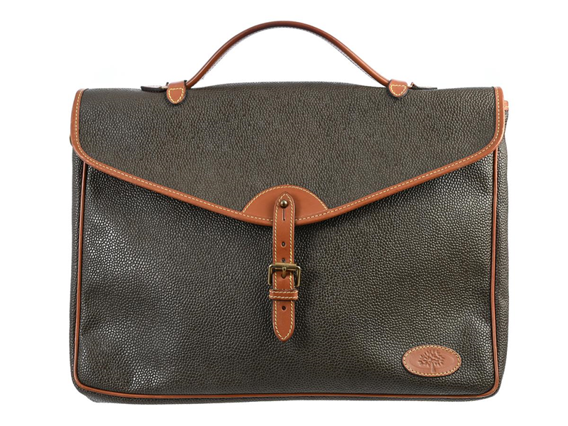 PORTFÖLJ, MULBERRY, brunt scotchgrain, mässingfärgade beslag, 38x28x6 cm,