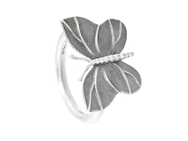 OLE LYNGGAARD, ring, Katrine, sterlingsilver, delvis oxiderat, briljantslipade diamanter 0,02 ctv, stl 16,75 mm, vikt 3,5 g.