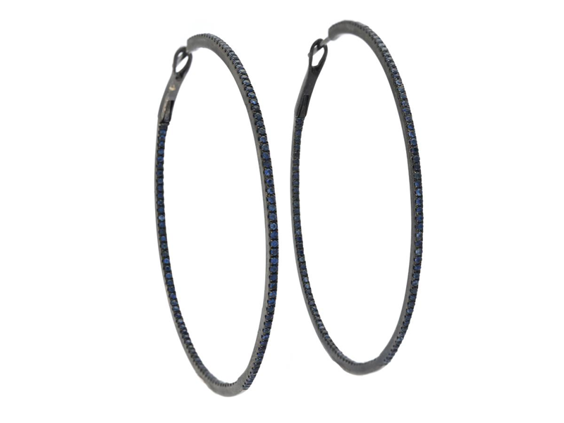 EBBA BRAHE, örhängen, The black Nina hoop, 18K vitguld svartrodierat, briljantslipade safirer, diameter 5 cm, vikt 8,3 g.
