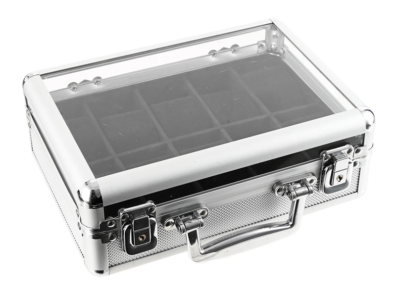 FÖRVARINGSETUI, med plats för 10 st armbandsur, 245 x 175 x 88 mm, metall/plast.