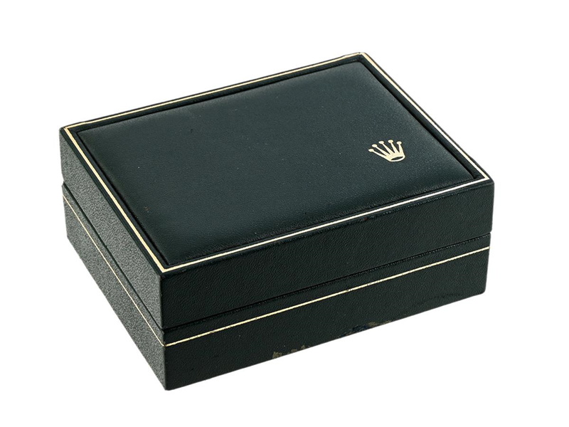 BOX, till Rolex armbandsur, grön, 128 x 100 x 52 mm, Ref nr. 11.00.71, ej komplett, skadad, ca 1980.