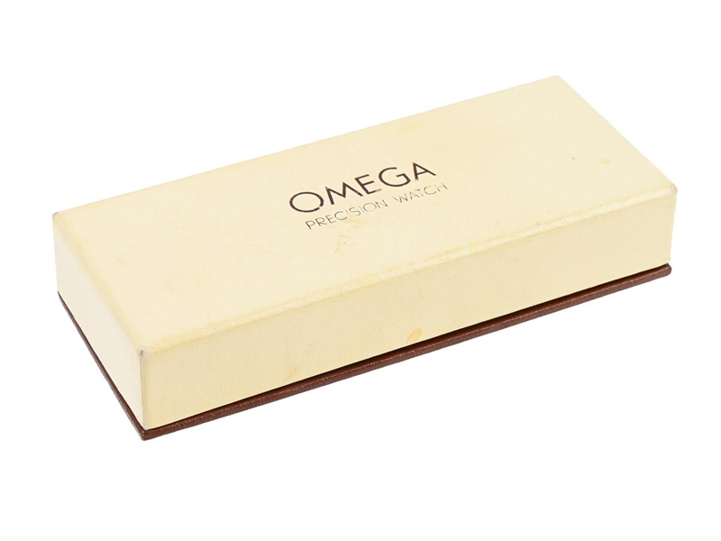 BOX, till Omega herrur, beige, 136 x 53 x 26 mm, skadad, ca 1950.