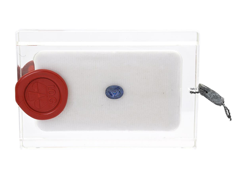 BLÅ SAFIR, oval blandslipning, 2,60 ct, förseglad, certifikatnummer 010638, I.O.G, mått 9,03 x 7,01 x 4,53 mm.