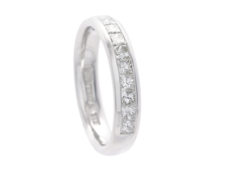 ENGELBERT, alliansring, 18K vitguld, prinsesslipade diamanter ca 0,84 ctv enligt gravyr, ca TW/VS, stl 16,75 mm, vikt 5 g.