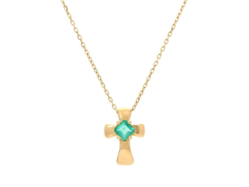 COLLIER, kors, 18K guld, smaragd ca 0,30 ct, längd 43 cm, vikt 3,5 g, smaragden har nagg och inneslutningar som når ytan.