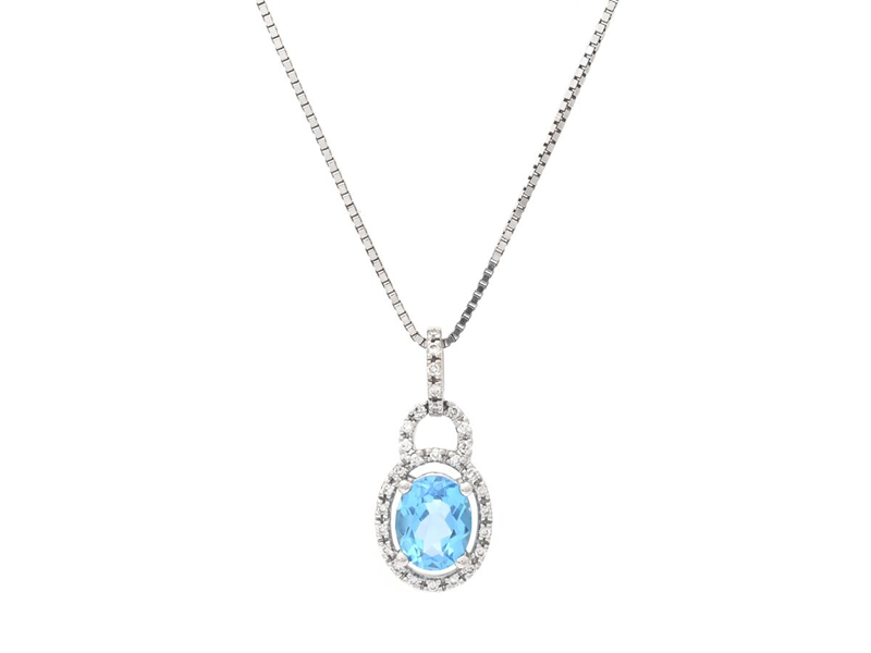 HÄNGE MED KEDJA, 18K vitguld, blå topas, briljantslipade diamanter ca 0,30 ctv, ca TW-W/VS-SI, längd 50 cm, vikt 6,3 g.