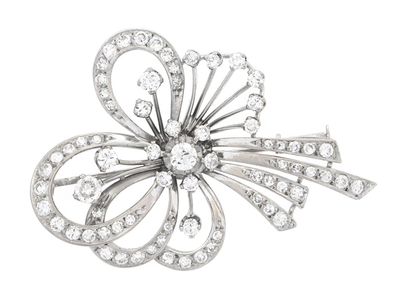 BROSCH, 18K vitguld, 71 briljant - och åttkantslipade diamanter ca 2,00 ctv, ca W/VS-SI, mått 48x34 mm, vikt 13,5 g.