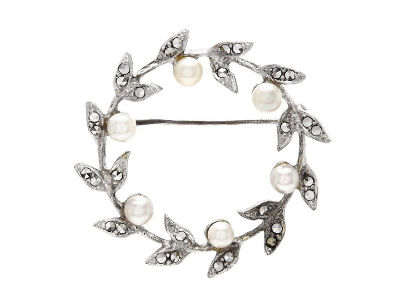 BROSCH, silver, odlade pärlor, markasit, diameter 3,5 cm, vikt 7,3 g.