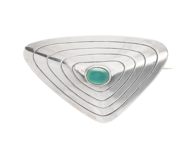 BROSCH, silver, grön kalcedon, Gillgren för G. Dahlgren & Co, mått 3x5,2 cm, vikt ca 9,5 g.