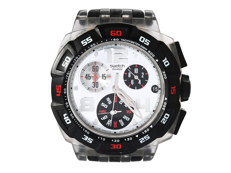 SWATCH, Legandary Eagle, Ref nr. SUIK400, kronograf, herrur, 41 mm, plast, quartz, plexiglas, datum, integrerat gummiband, originalspänne i plast, ca 2008.