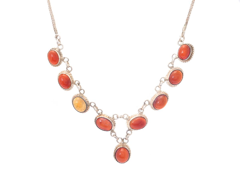 COLLIER, silver, karneol, längd ca 45 cm, vikt 14,1 g.