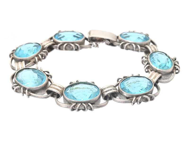 ARMBAND, silver, syntetiska spineller, längd ca 18 cm, säkerhetskedja vid lås, vikt 29,8 g.