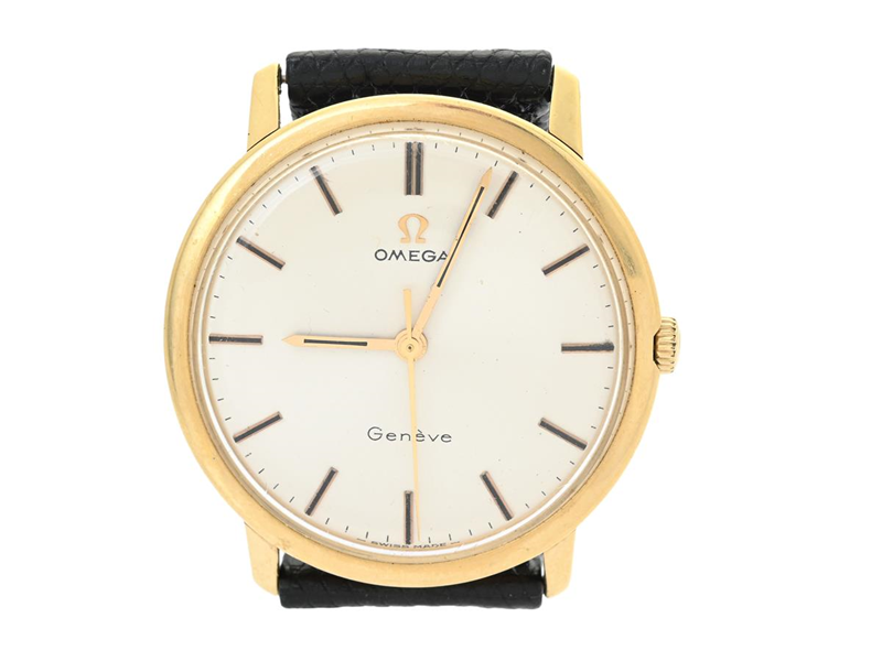OMEGA, Genève (-Swiss Made-), Cal 601, Serie nr. 28799137, Ref nr. BA 131.021, Boett nr. 131.021 SP, herrur, 33,5 mm, 18K guld, manuell, plexiglas, bucklor, läderband, originalspänne i doublé, ca 1970, box (skadad), ytterkartong.