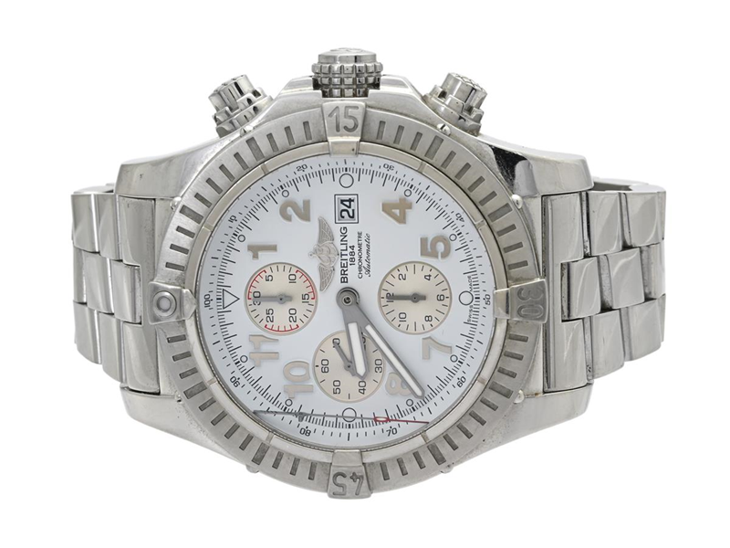 BREITLING, Super Avenger, Chronometre, Cal 13 (ETA 7750), Verk nr. 2387865, Serie nr. 2387865, Ref nr. A1337011/A660, Boett nr. 1608 B5, kronograf, herrur, 48,4 mm, stål, automatisk, safirglas, datum, OBS: kronografsekundvisare lös, defekt (akut servicebehov), Professionallänk II, viklås, Ref nr. W0808/135A, ca 2008.