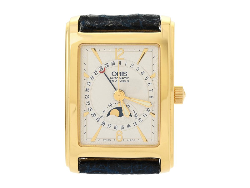 ORIS, Classic Rectangular, Cal 586 (ETA 2685), Boett nr. B7460, herrur, 26 x 30 (38) mm, doublé, automatisk, mineralglas, datum, månfas, skadad urtavla, läderband, originalspänne, ca 1995, box.