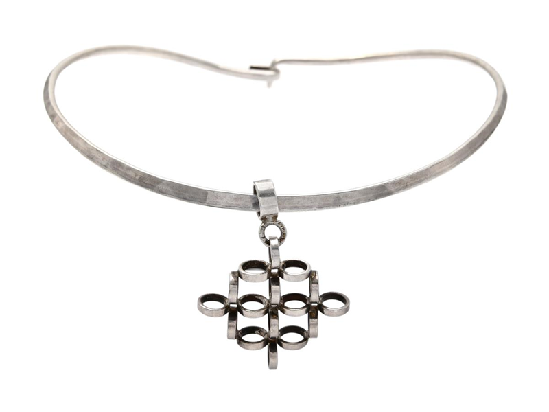 CECILIA JOHANSSON, collier med hänge, silver, signerad Cecilia, Göteborg 1972, mått 15 x 11,5 cm, vikt 32,4 g. (d).