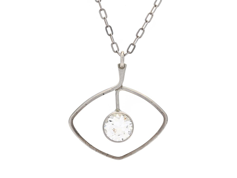 GERT THYSELL, hänge med kedja, silver, bergkristall, Gussi, Malmö 1964, höjd 55 mm, kedja 54 cm, vikt 19,8 g.