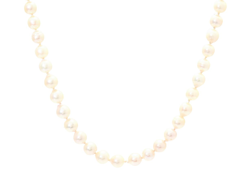PÄRLCOLLIER, odlade pärlor ca 6,75 mm något barocka, lås i 18K guld med odlad pärla, längd 55 cm, vikt 32,5 g.