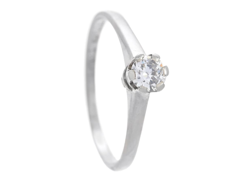 ENSTENSRING, 18K vitguld, briljantslipad diamant ca 0,21 ct enligt gravyr, ca TW/SI, stl 17,25 mm, vikt 2,1 g, slitna klor.