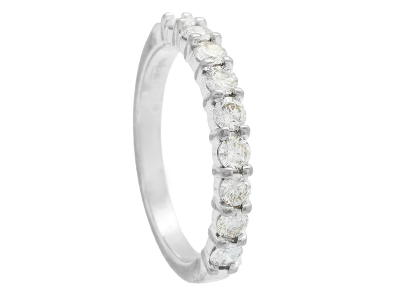 ALLIANSRING, 18K vitguld, briljantslipade dimanter ca 0,45 ctv, R-W/VS-SI, Iduna, Falköping, stl 16 mm, vikt 2,7 g.