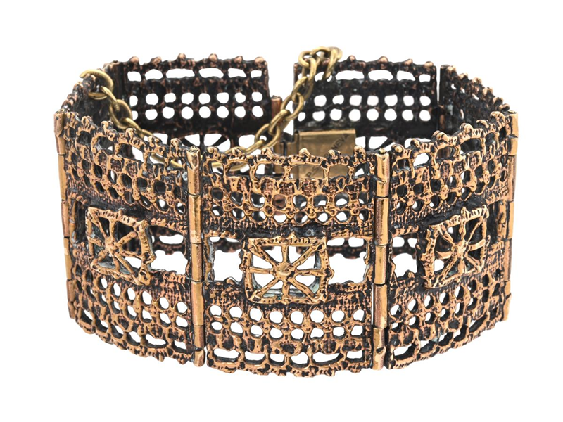 P. SARPANEVA, armband, mässing, längd 18,5 cm, bredd 3,5 cm, vikt 59,7 g, säkerhetskedja.