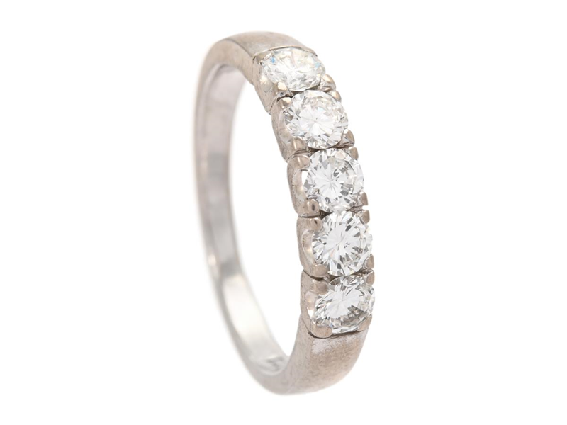 ALLIANSRING, 18K vitguld, 5 briljantslipade diamanter ca 0,63 ctv, ca TW/VVS*, 3 st diamanter har skador, W.A Bolin, stl 16,5 mm, vikt 3,6 g.
